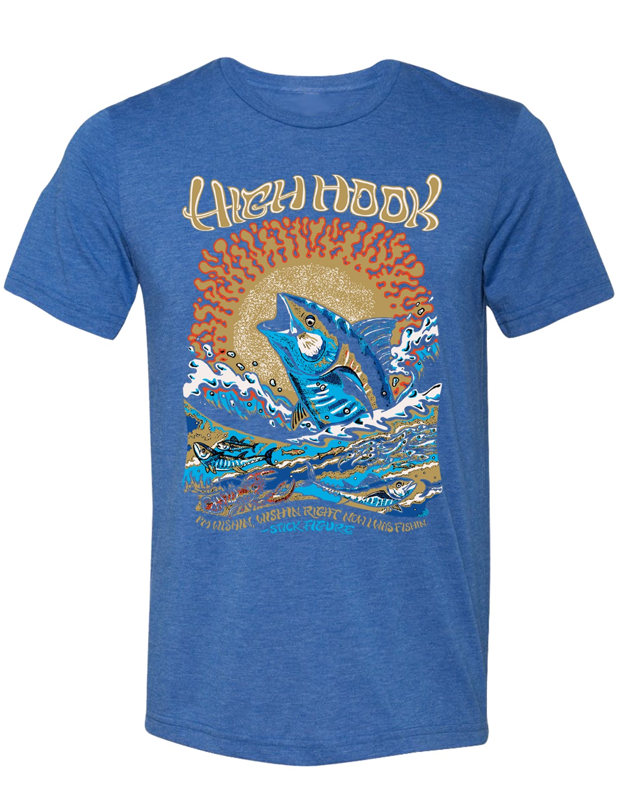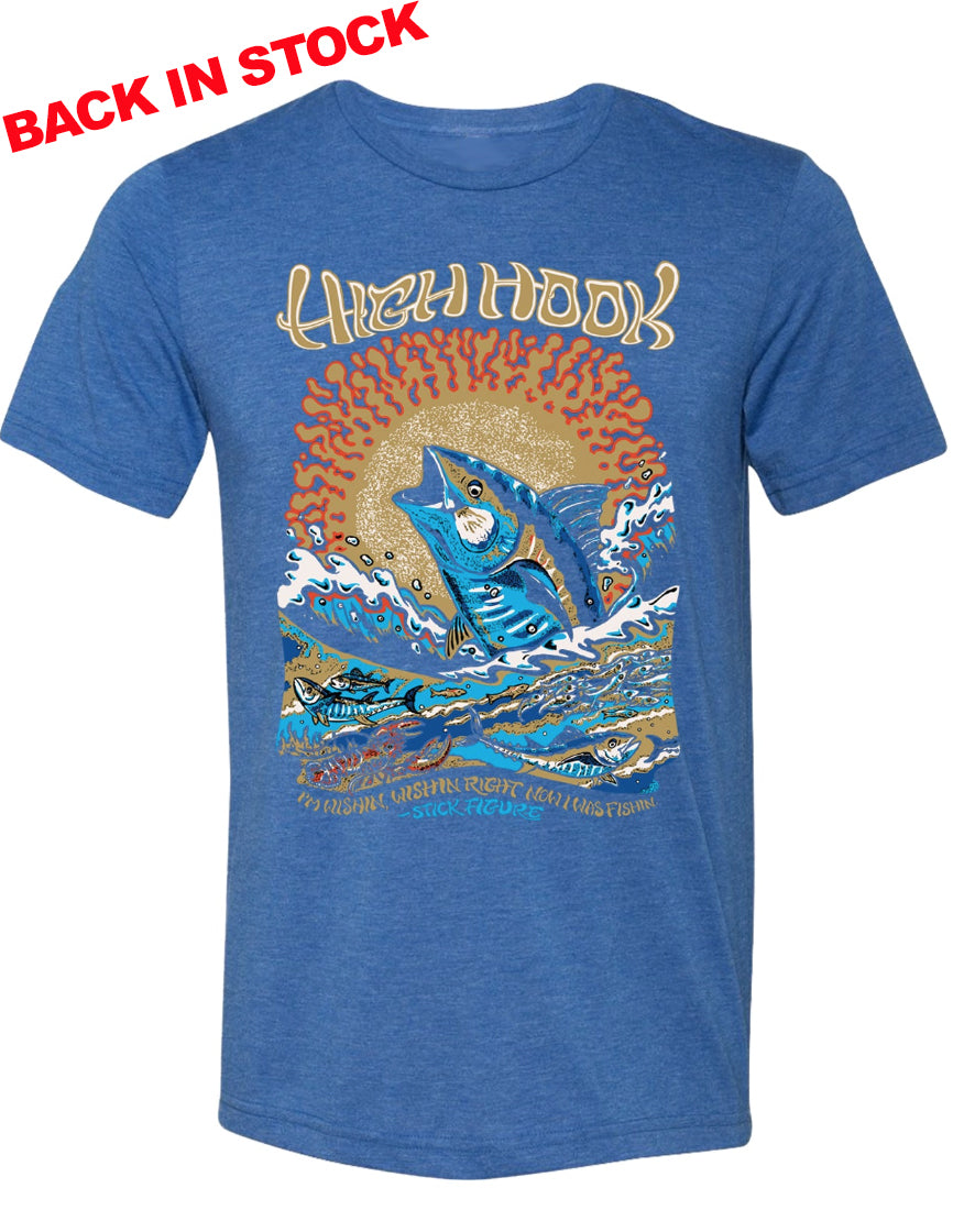 The "Wishin I Was Fishing" T-Shirt is a High Hook & Stick Figure collaboration. First printed for a music festival in 2018, we have brought it back and had it printed on our  well-loved favorite shirt, featuring a crew neck, short sleeves and designed with superior combed and ring-spun cotton that acts as the best shirt for comfort. Light weigh, soft, and comfortable.